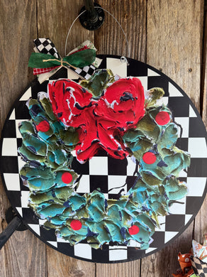 Christmas Wreath Door Hanger, Textured Wreath Print Sign, Christmas Decor