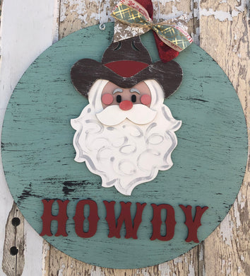 Howdy Santa Door Hanger, Christmas Sign, Country Christmas, Christmas Decor